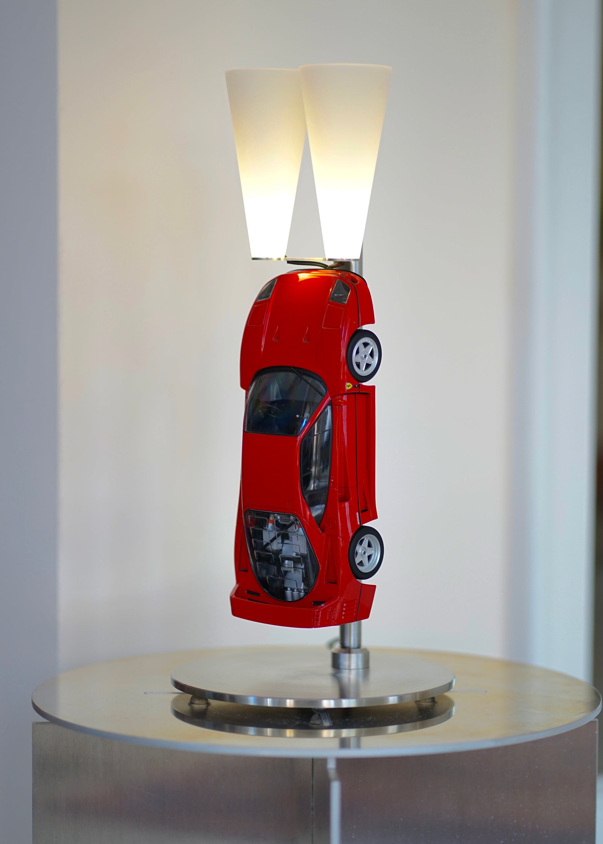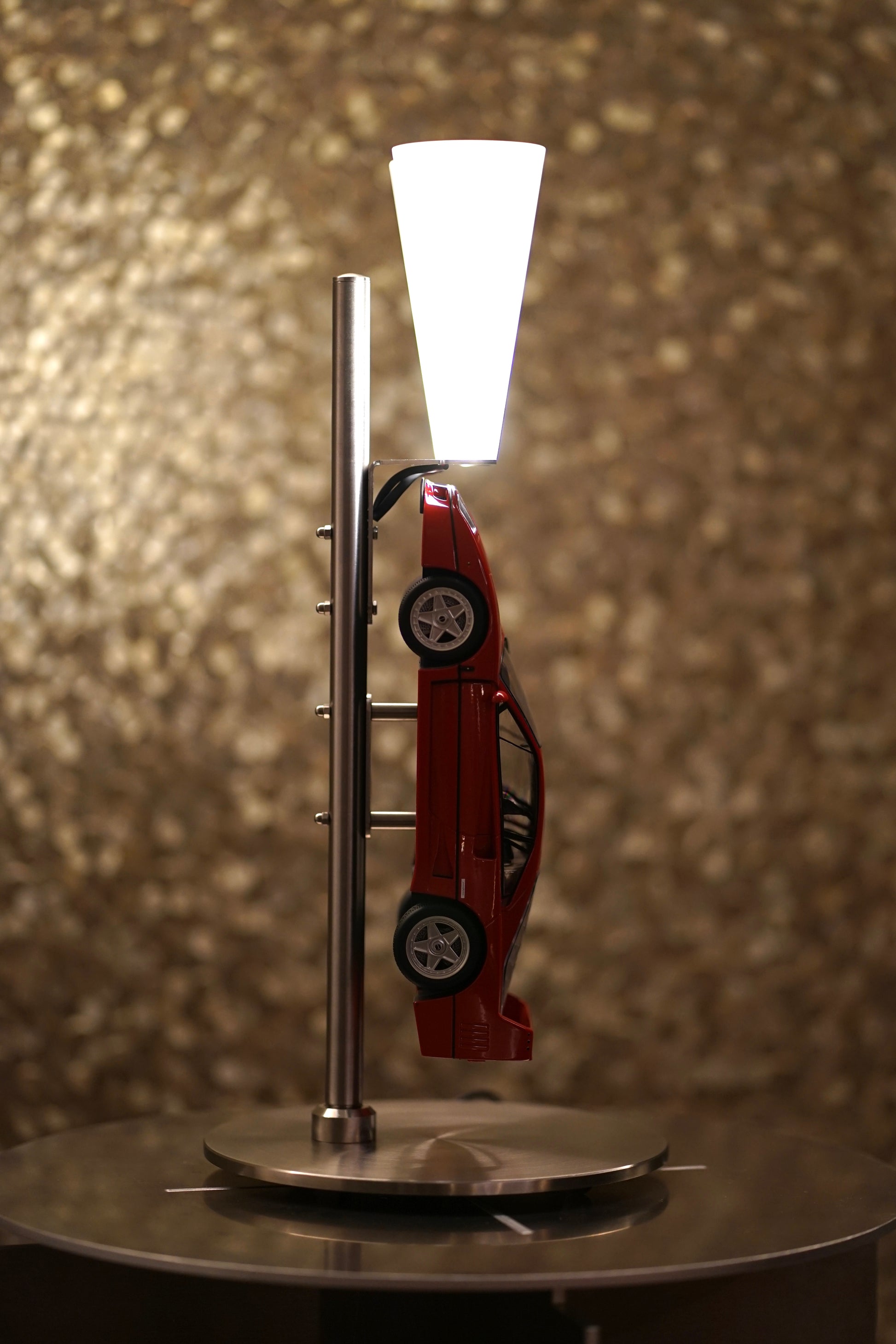 Die Lampe ist komplett aus Edelstahl gefertigt und präsentiert den legendären Ferrari F40 in atemberaubender Lichtstimmung. Durch die dimmbaren Lichtkegel wird egal ob im Wohnbereich, oder in deinem Büro eine besondere Atmosphäre geschaffen.