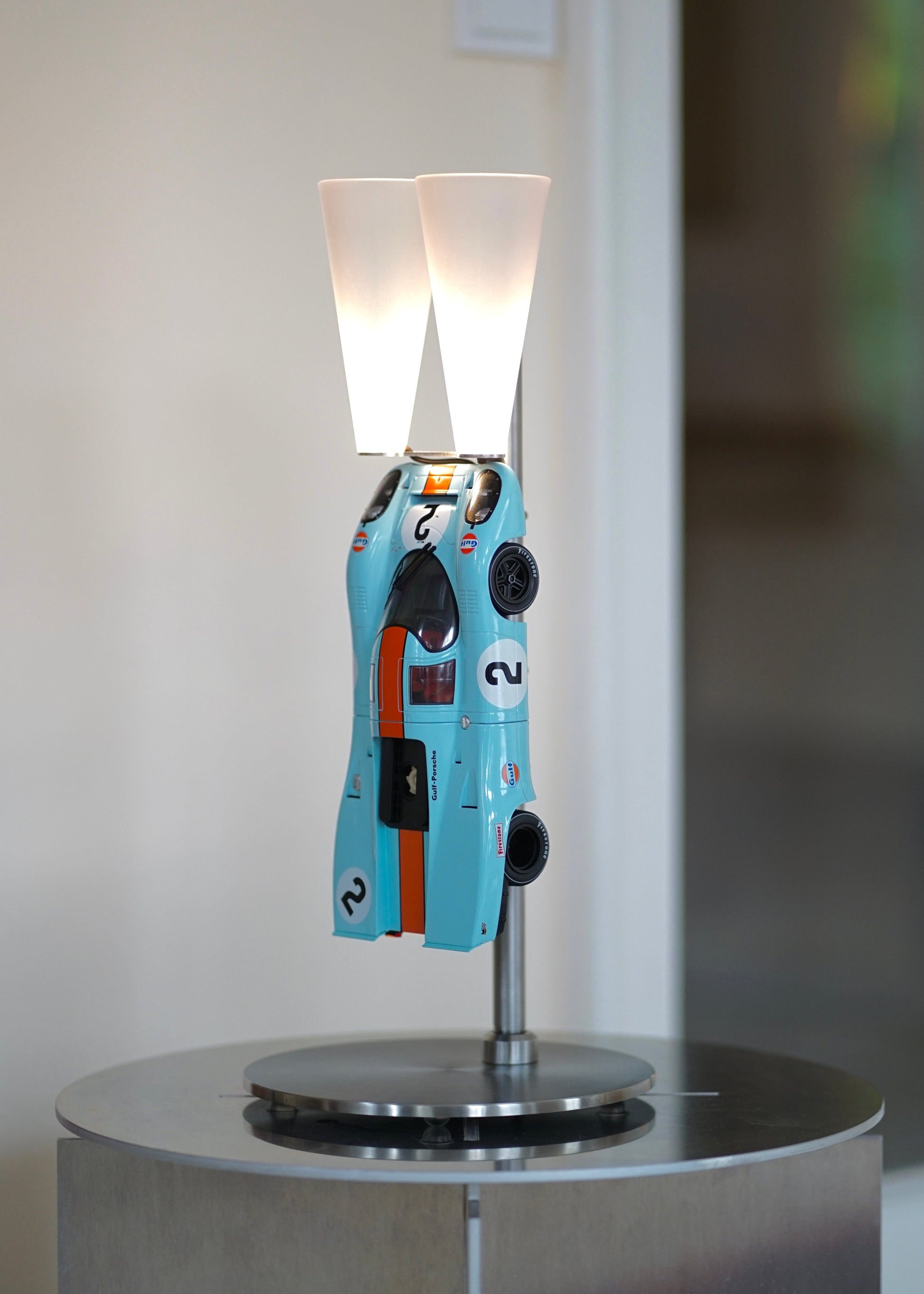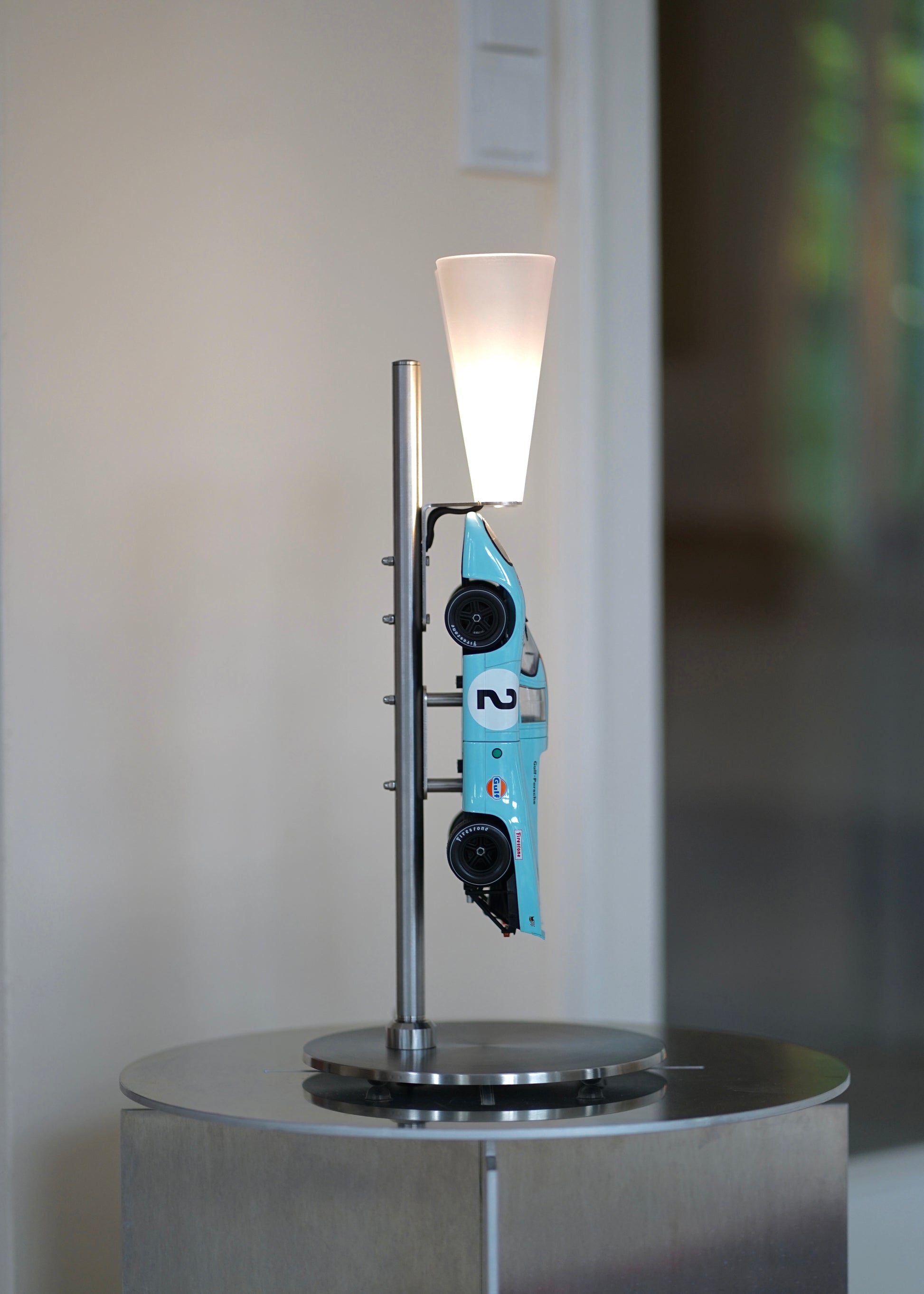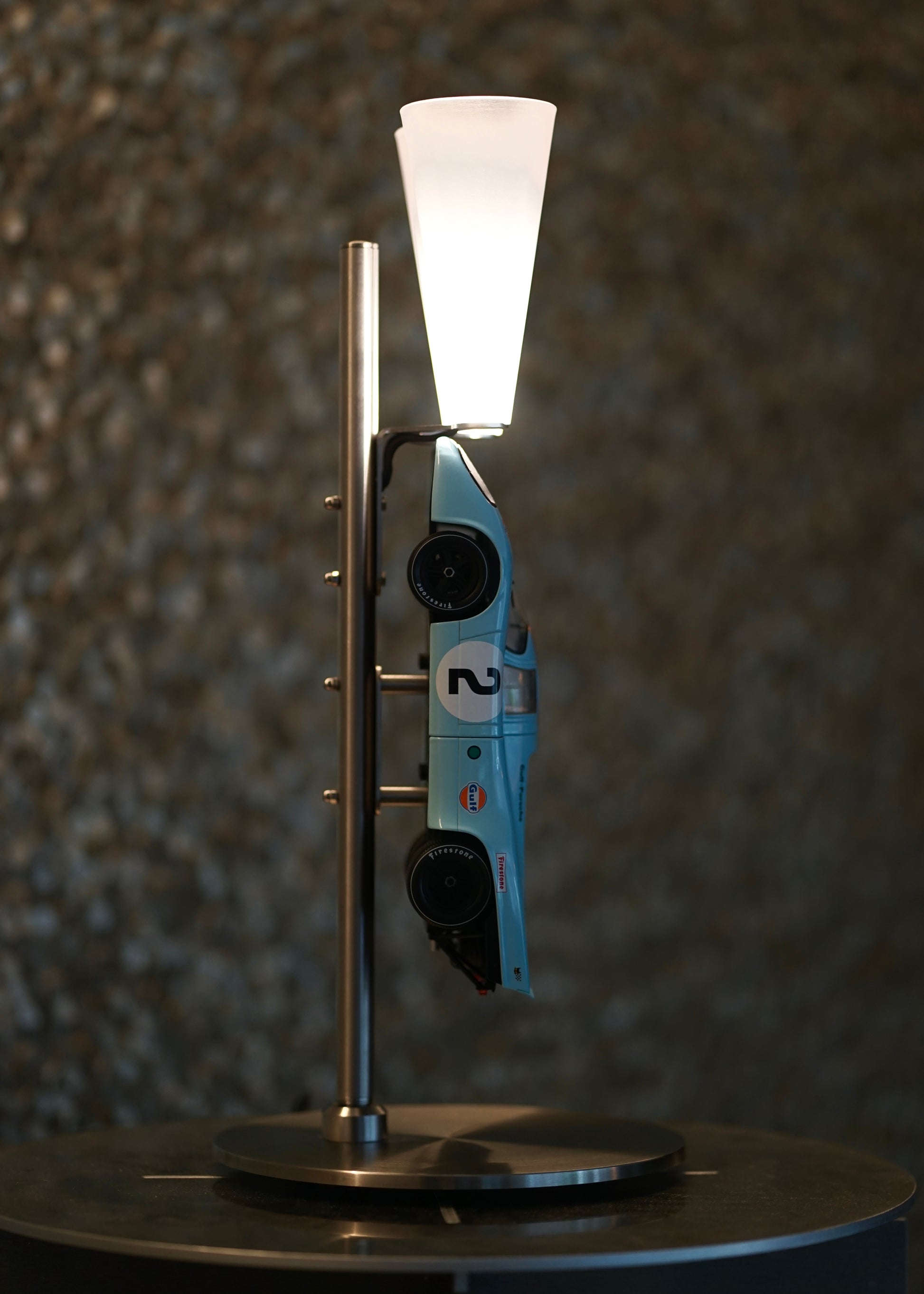 Die Lampe ist komplett aus Edelstahl gefertigt und präsentiert den legendären Porsche 917K in atemberaubender Lichtstimmung. Durch die dimmbaren Lichtkegel wird egal ob im Wohnbereich, oder in deinem Büro eine besondere Atmosphäre geschaffen.