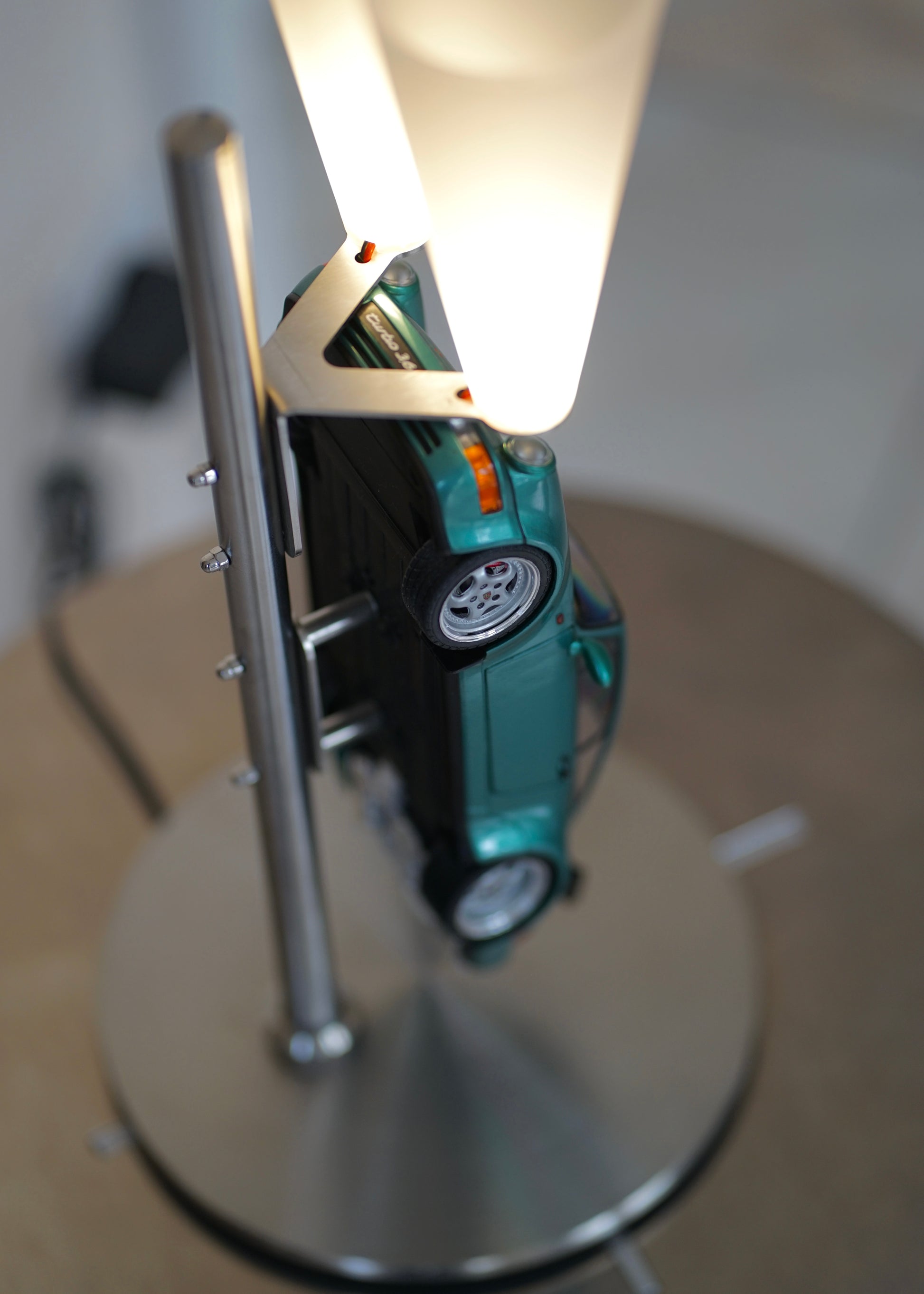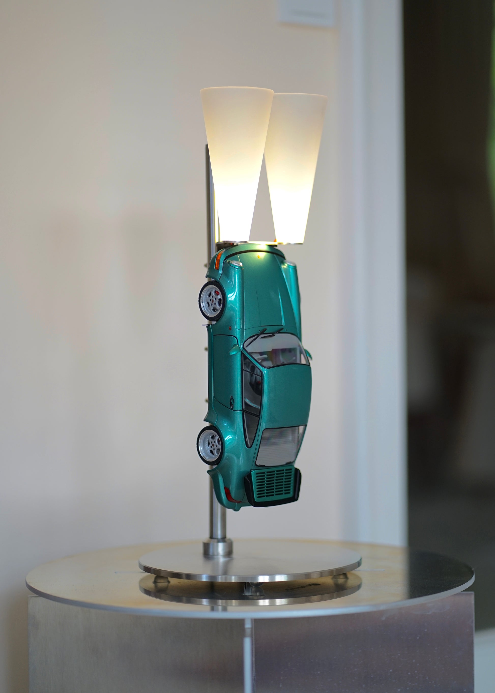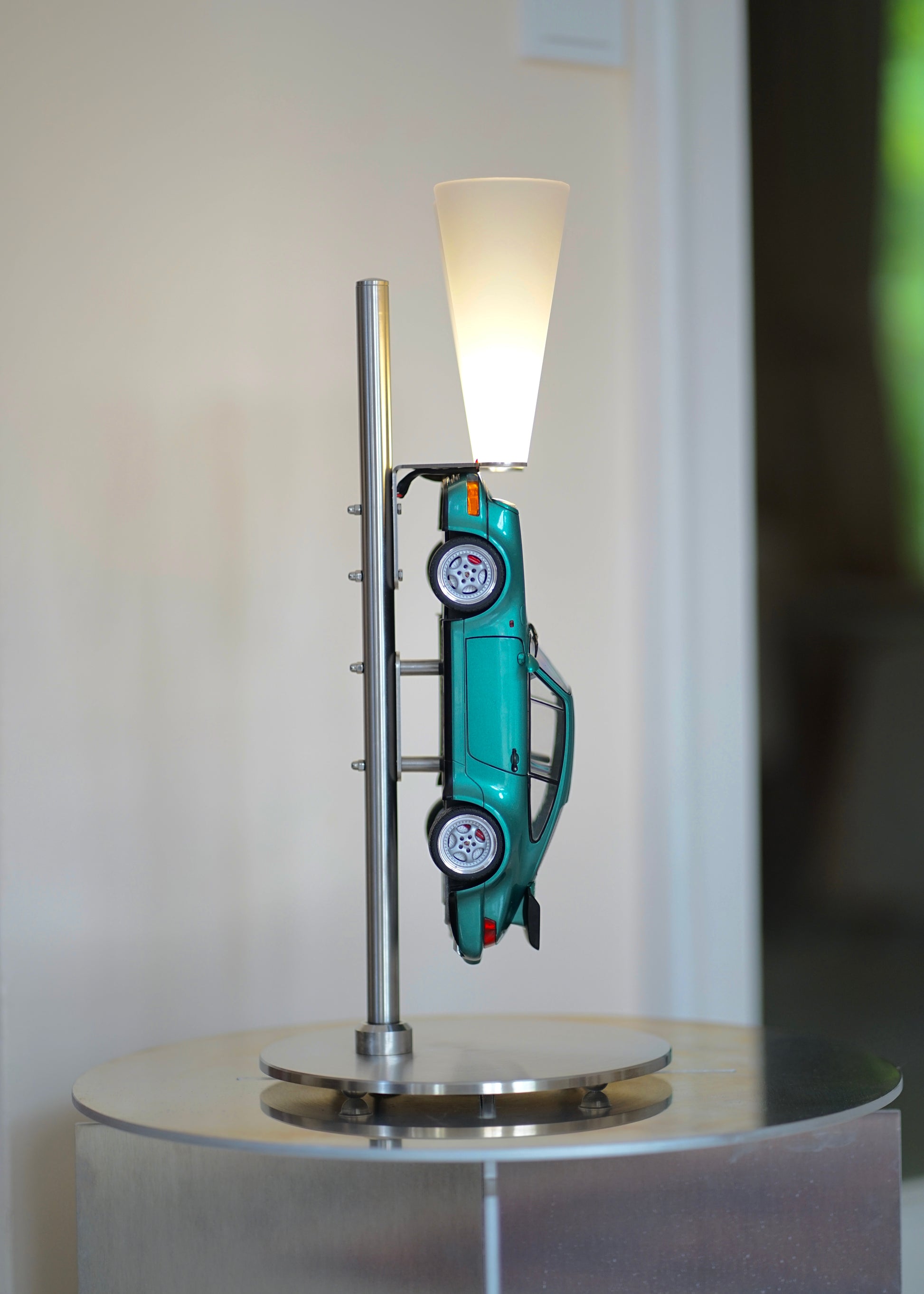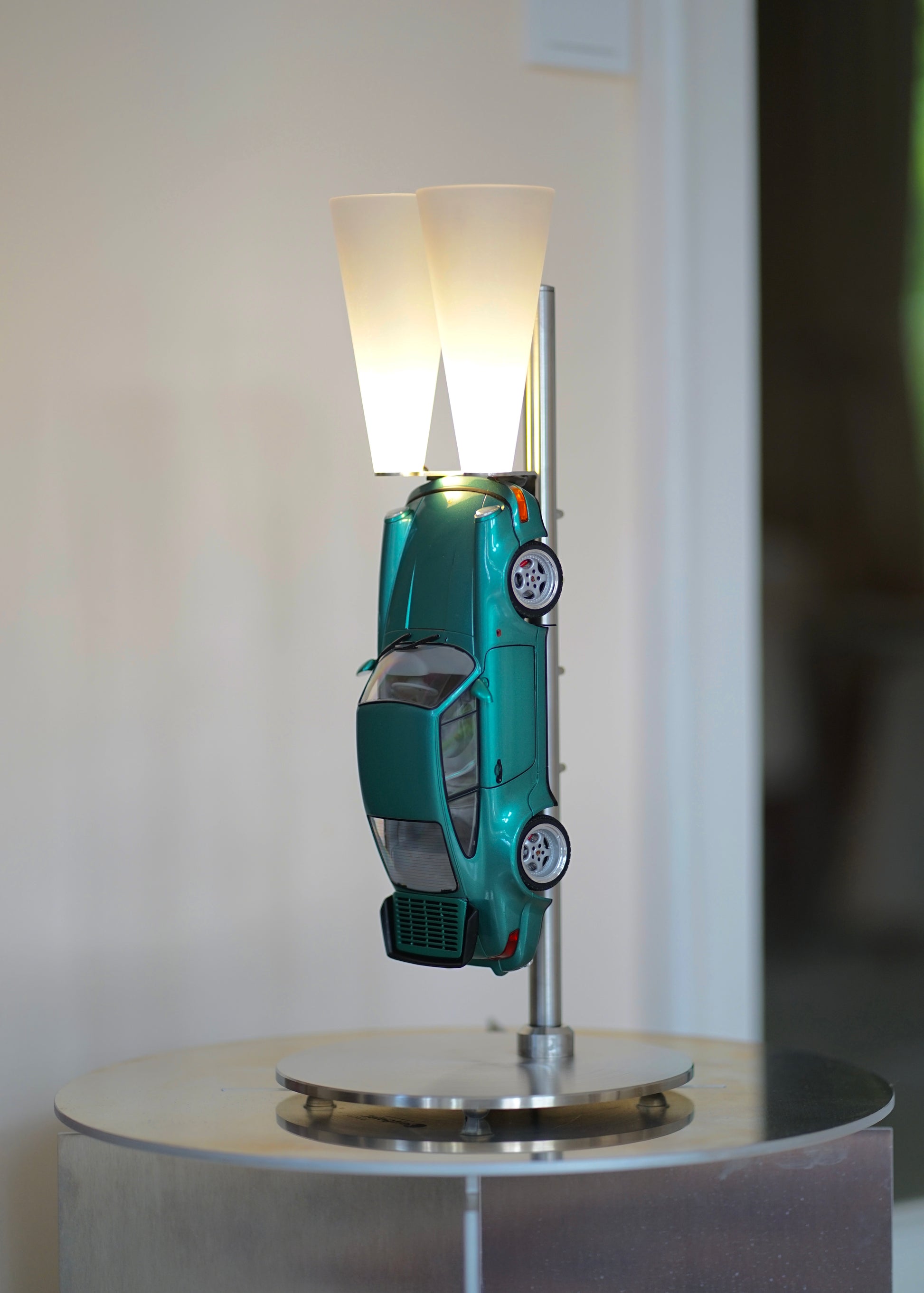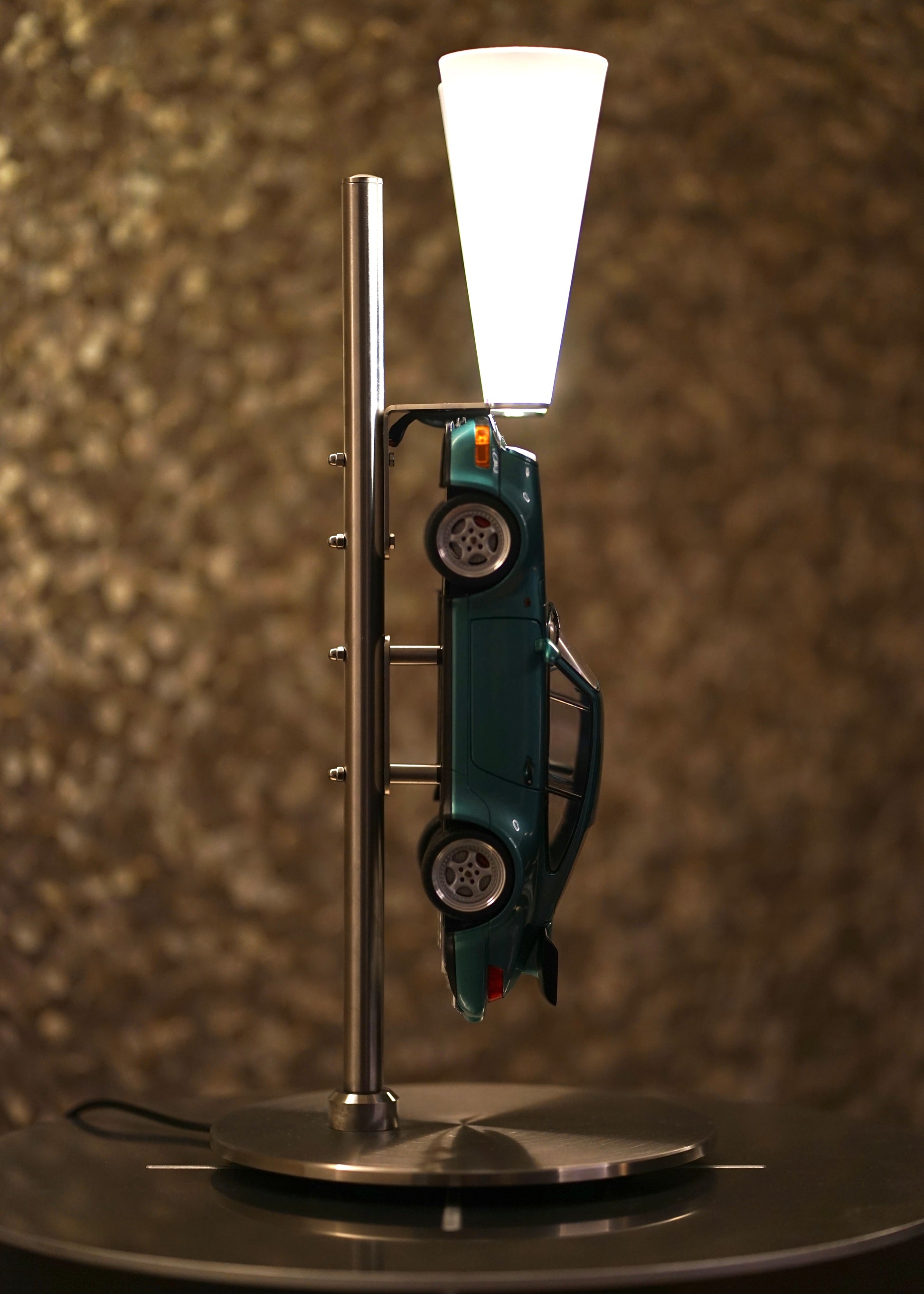 Die Lampe ist komplett aus Edelstahl gefertigt und präsentiert den legendären Porsche 964 Turbo in atemberaubender Lichtstimmung. Durch die dimmbaren Lichtkegel wird egal ob im Wohnbereich, oder in deinem Büro eine besondere Atmosphäre geschaffen.